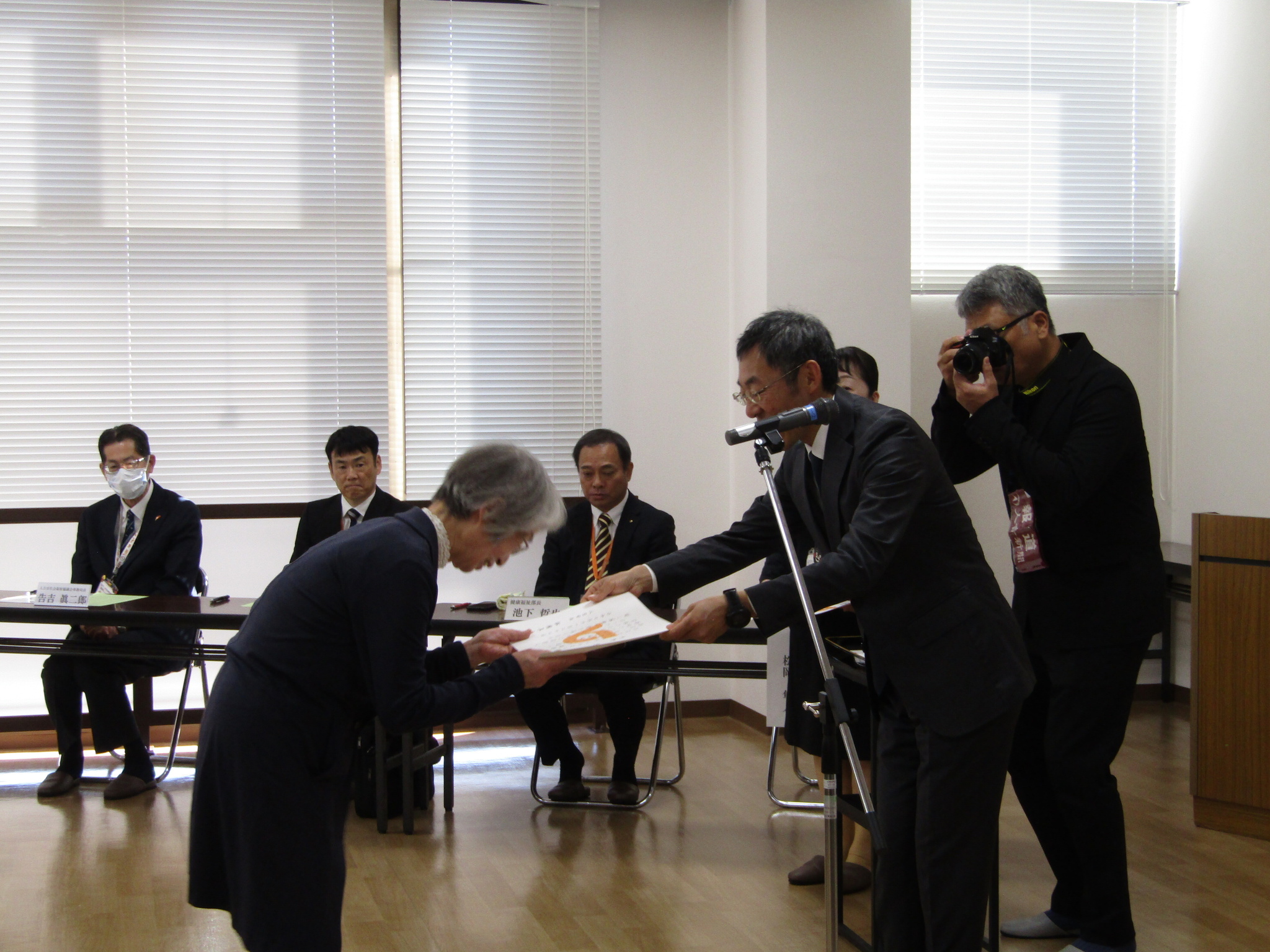 松岡市長からお一人お一人に感謝状が授与されその後、松岡市長、民児協を代表して尾方治則さんから感謝と労いの挨拶がありました。最後に退任される民生委員児童委員さんを代表して人吉市民児協の会長を務められた山室廣美さんから活動を通しての苦労や良かったこと、今後の民児協に対する温かい言葉をいただきました。